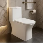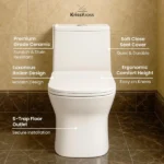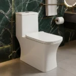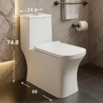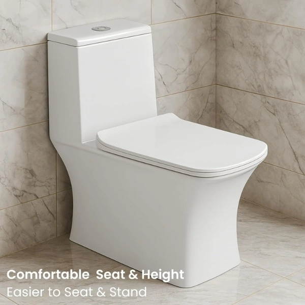 - Modern one‑piece design: seamless ceramic body with a compact footprint for apartments and remodels; easy to wipe clean with fewer crevices