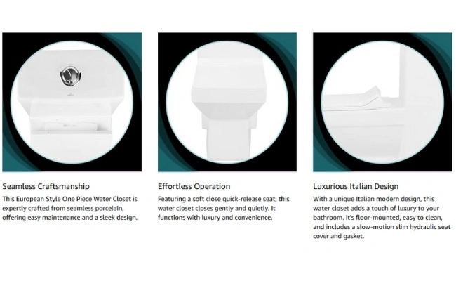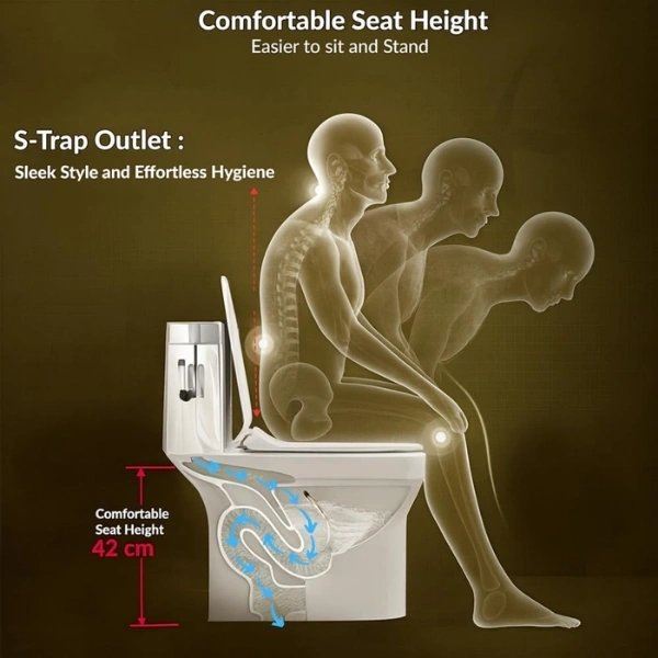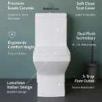 - 𝗤𝘂𝗶𝗲𝘁 𝗖𝗹𝗼𝘀𝗲 𝗖𝗼𝗺𝗳𝗼𝗿𝘁: Prioritizing not only performance and efficiency but also user comfort, the KrissKross one-piece commode boasts a thoughtfully designed seat for a relaxing bathroom experience. Soft-close hinges further enhance comfort while reducing noise.