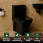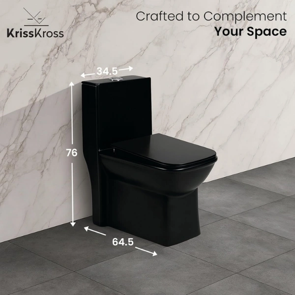 - 𝗦𝗽𝗮𝗰𝗲-𝗦𝗮𝘃𝗶𝗻𝗴 𝗗𝗲𝘀𝗶𝗴𝗻: Compactly measuring at 64.5cm x 34.5cm x 76cm, the KrissKross western toilet is tailored for smaller bathrooms, ensuites, and similar spaces. Its outlet connection conveniently positioned 225mm (9 inches) from the wall facilitates easy installation.