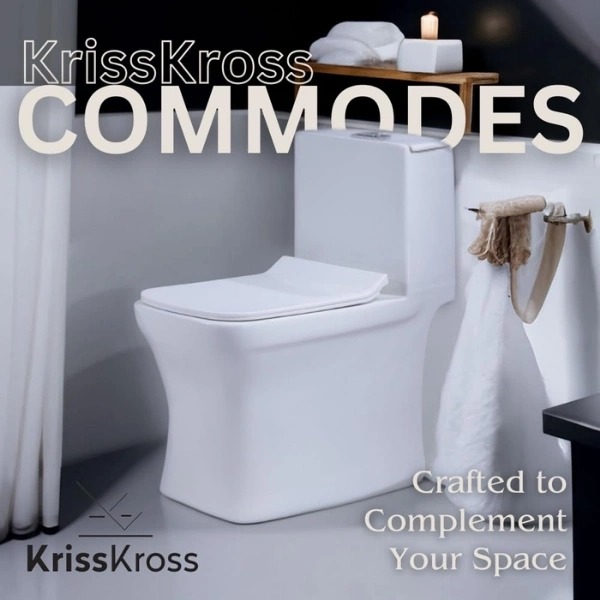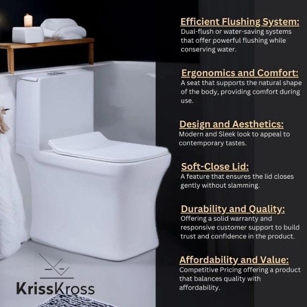 KrissKross One Piece Ceramic Western Floor Mounted One Piece Water Closet Ceramic Western Toilet/Commode/European Commode Square With Soft Close Seat Cover For Lavatory, Toilets (P-Trap Outlet Is From Wall)