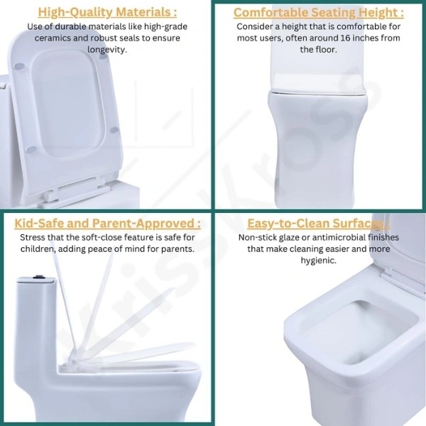 - Porcelain One-piece seamless, easy-to-clean & Comfort toilets design and Come With New soft close quick-release seat closes gently and quietly