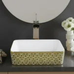 - Material : Ceramic, Color : Gold Abstract Corrosion Free Glaze Technology: The version of Glaze increases the surface glossiness and easy cleaning of the products.