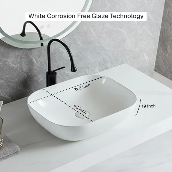 • Material : Ceramic, Color : White Corrosion Free Glaze Technology: The version of Glaze increases the surface glossiness and easy cleaning of the products.