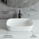 • Product Type : TableTop / Counter Top Wash Basin for Bathroom / Washroom, 100% Scratch Proof & Package Includes: Basin only (Taps, Faucet and other accessory are not included)